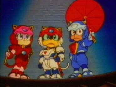 As it happened, my research was a little cursory, consisting as it did of typing “Samurai Pizza Cats” into Google, and investigating the first three or four websites it came up with. Still, I thought that since, recently, my articles have been sadly lacking in pictures, I’d nick a couple off these websites and put them on mine, just so you could all see pictures of Samurai Pizza Cats in all their pride and glory. And here’s the first one: